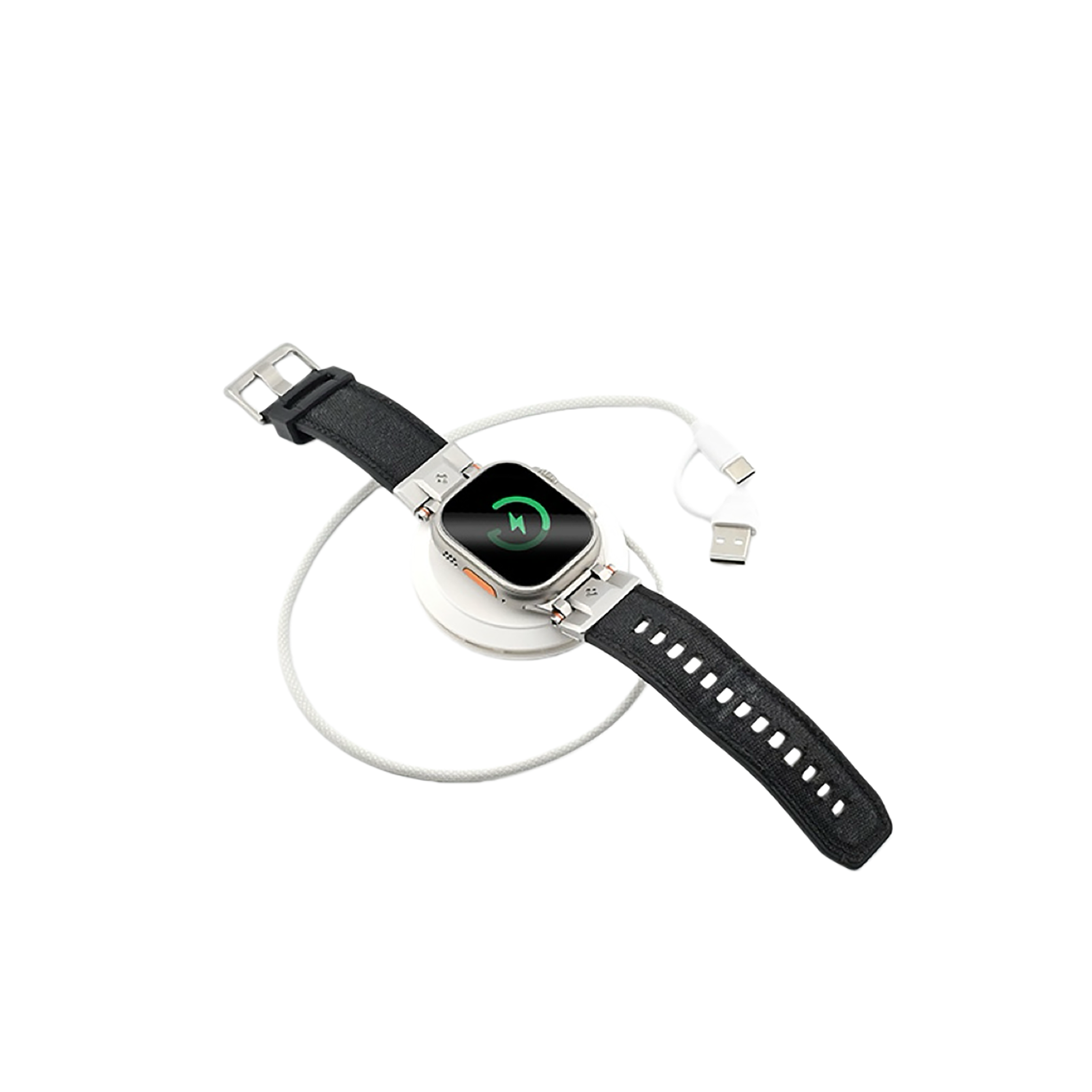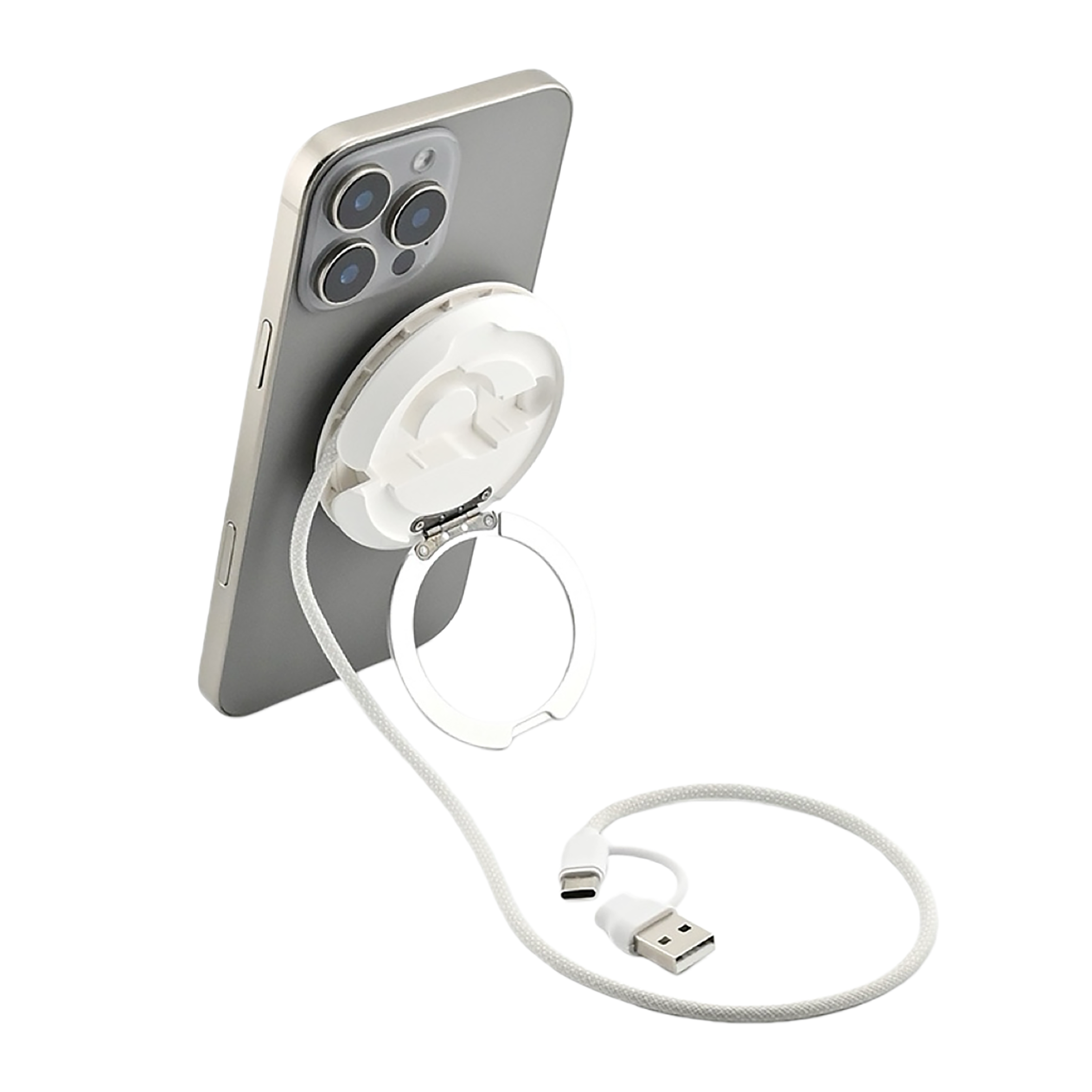Kompaktní magnetická bezdrátová nabíječka je určená pro současné nabíjení telefonu, TWS sluchátek a chytrých hodinek Apple Watch. Zařízení kombinuje tři nabíjecí plochy v jednom těle a zároveň slouží jako praktický stojánek pro mobilní telefon. Díky magnetickému uchycení je telefon při nabíjení stabilně fixován v optimální poloze. Konstrukce z ABS materiálu zajišťuje nízkou hmotnost a každodenní odolnost. Minimalistické provedení je vhodné na pracovní stůl i noční stolek. Je kompatibilní se všemi telefony, díky magnetickému kroužku, který je součástí balení.