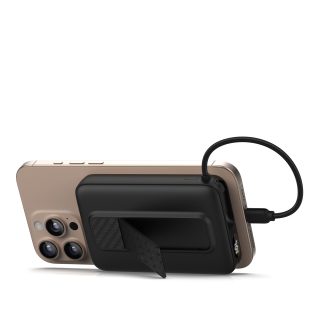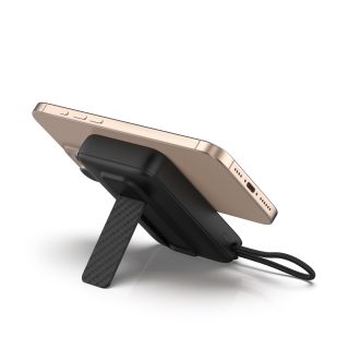 Díky integrovaným magnetům se snadno přichytí k zadní části telefonu a podporuje nabíjení kabelem i bezdrátově.