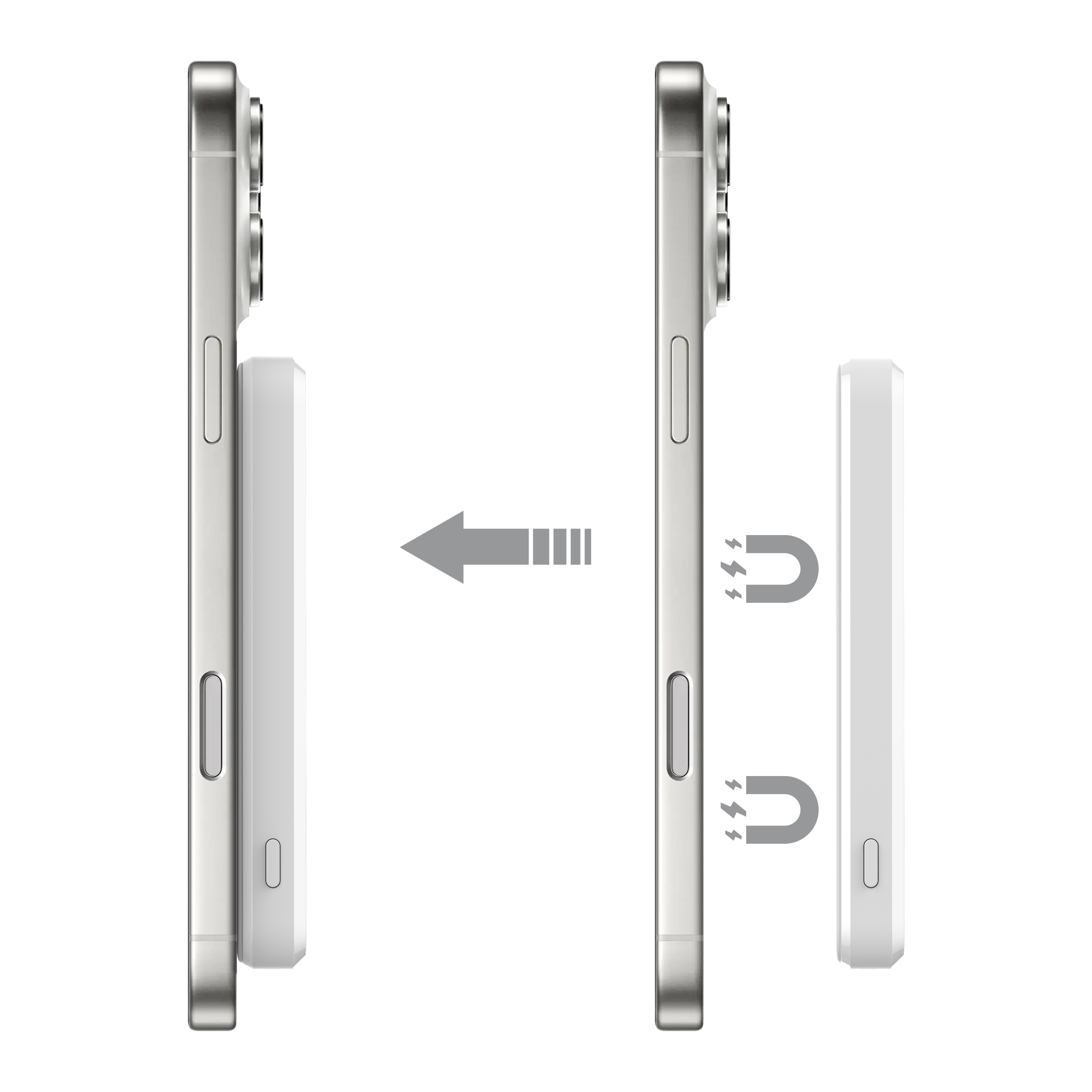 Podporuje rychlé kabelové nabíjení až 20 W a bezdrátové nabíjení až 15 W, což zajišťuje efektivní doplňování energie při každodenním použití. Součástí balení je kovový kroužek, který umožňuje používat MagSafe i na telefonech bez magnetického uchycení.