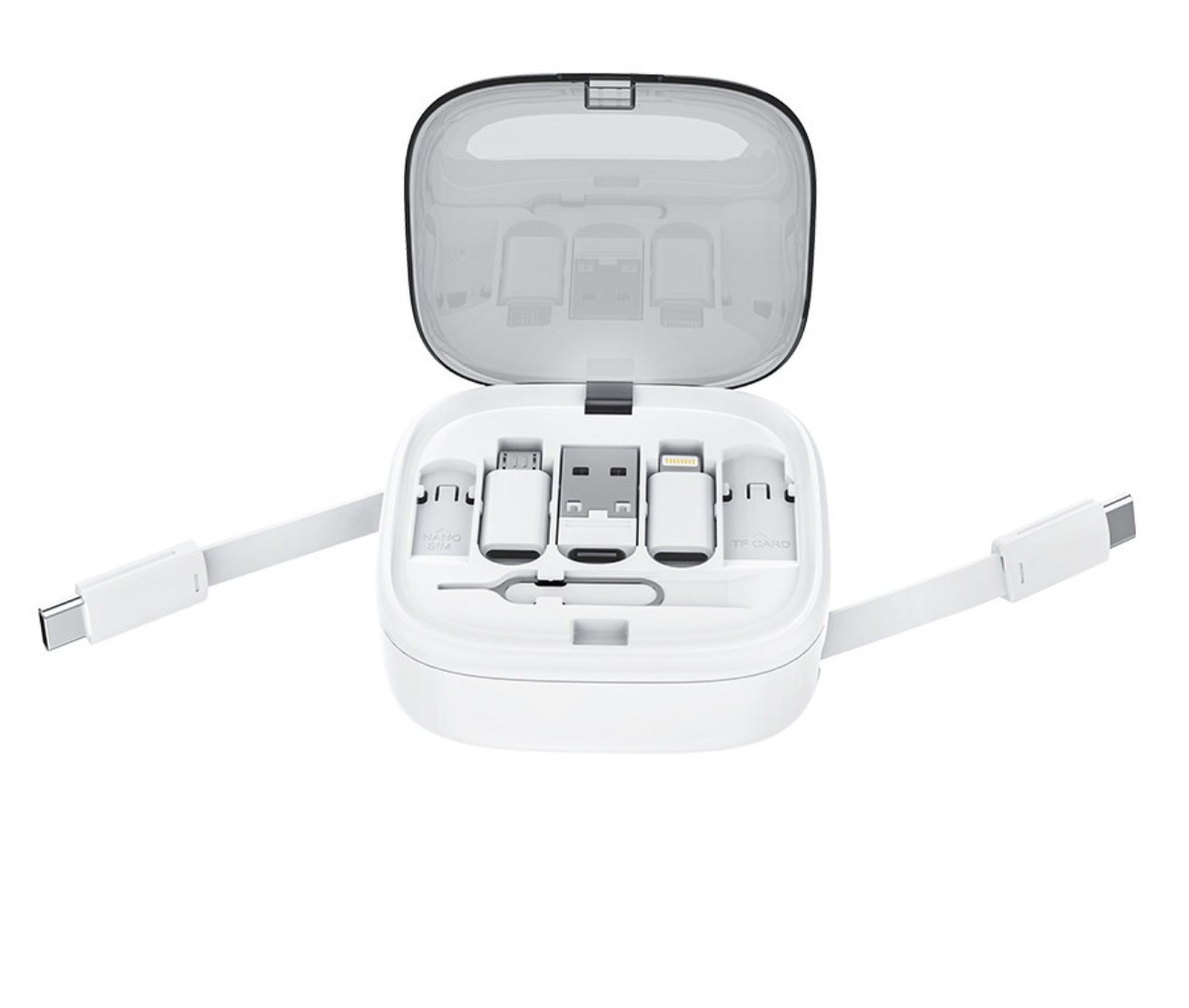 Univerzální kabelová sada pro každou situaci. Obsahuje 1m USB-C kabel (60 W) a adaptéry pro Lightning, Micro USB i USB-A.