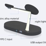 Univerzálna bezdrôtová nabíjačka 5v1 umožňuje súčasné nabíjanie telefónu, hodiniek, slúchadiel a ďalších zariadení v elegantnom kompaktnom prevedení. Telo nabíjačky je vyrobené z kombinácie ABS plastu a zinkovej sliatiny, čo zaručuje pevnosť, dlhú životnosť a elegantný vzhľad. Ponúka výkon, štýl aj praktickosť v jednom – ideálny pre domáce aj kancelárske použitie. Integrované LED nočné svetlo s výkonom 2 W vytvára príjemnú atmosféru pri večernom používaní. Dostupné farby: biela alebo čierna.