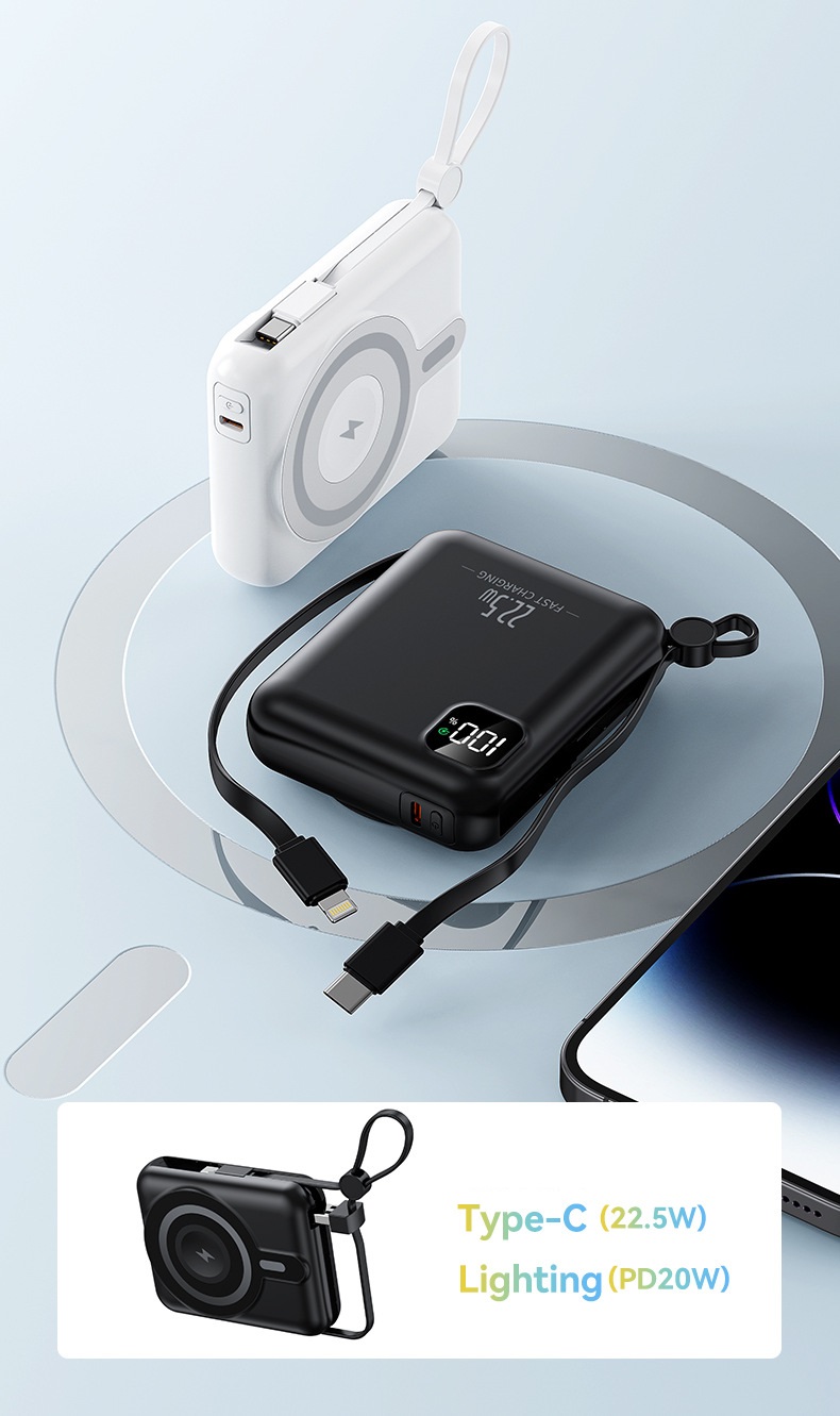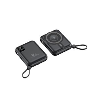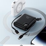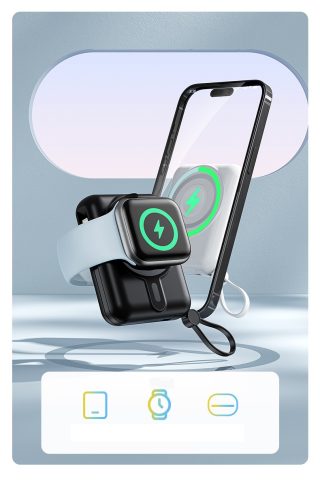 Multifunkčná powerbanka s kapacitou 10 000 mAh ponúka kombináciu káblového aj bezdrôtového nabíjania v kompaktnom prevedení. Podporuje rýchle nabíjanie Power Delivery až 20 W a je vybavená odpojiteľnými káblami USB-C a Lightning, takže nie je nutné nosiť ďalšie príslušenstvo. Súčasne umožňuje bezdrôtové nabíjanie mobilného telefónu, Apple Watch aj AirPods, čo z nej robí praktické riešenie pre každodenné použitie aj cestovanie. Odolné telo z ABS materiálu zaisťuje nízku hmotnosť a dlhú životnosť. K dispozícii v štyroch farebných variantoch: biela, čierna, modrá a fialová. Je kompatibilný so všetkými telefónmi, vďaka magnetickému krúžku, ktorý je súčasťou balenia.