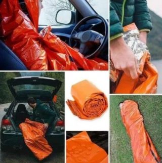 Núdzový vonkajší tepelný spacák sa stáva nevyhnutným vybavením každého turista. Tento vonkajší tepelný spacák bráni telu chladu v extrémnych situáciách a zlepšuje tepelné pohodlie, keď sa ocitnete v núdzi. Môže sa však použiť napríklad ako podložka pod spacák alebo ako strecha, keď sa potrebujete skryť pred dažďom. Dĺžka je 213 cm a hmotnosť iba 130 g.