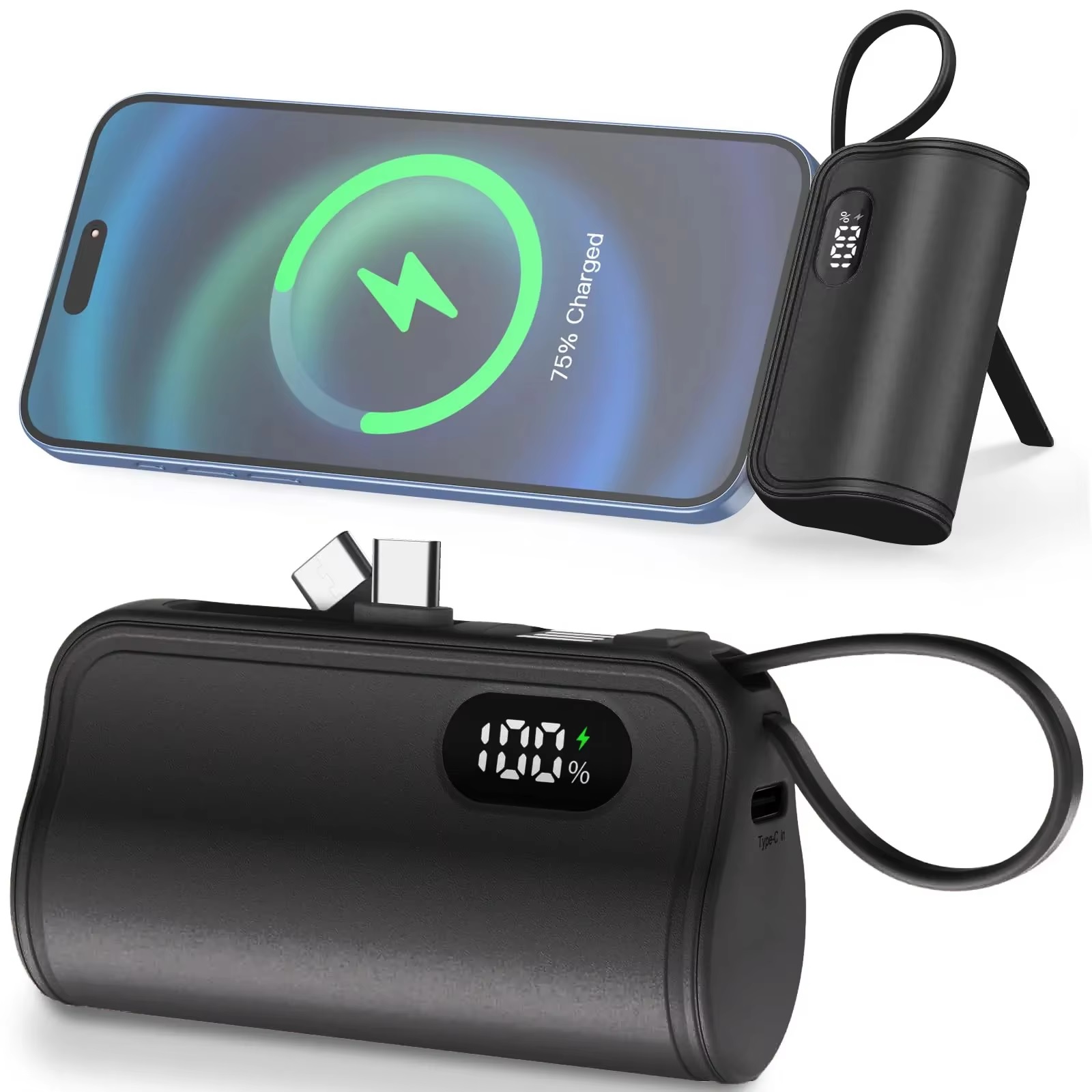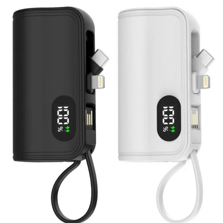 Powerbanka využívá 5000mAh Li-ion baterii, která poskytuje dostatek energie pro průběžné nabíjení mobilních zařízení. Nabíjení probíhá přes vestavěný USB kabel nebo přes port USB-C s podporou vstupu 5 V / 2 A. K dispozici je výstup přes integrovaný Lightning konektor nebo USB-C konektor, což zajišťuje širokou kompatibilitu s moderními smartphony. Kabelová konstrukce umožňuje přímé nabíjení zařízení bez nutnosti externích kabelů. Nízká hmotnost 65 g a velmi kompaktní rozměry usnadňují každodenní přenášení. Tělo z ABS materiálu zvyšuje odolnost při používání a dostupnost dvou barevných variant umožňuje sladění s elektronickými doplňky.