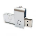 Glass USB Flash Drive s kovovým otáčajúcim sa uzáverom. Pri pripojení k počítaču je podsvietená LED USB.